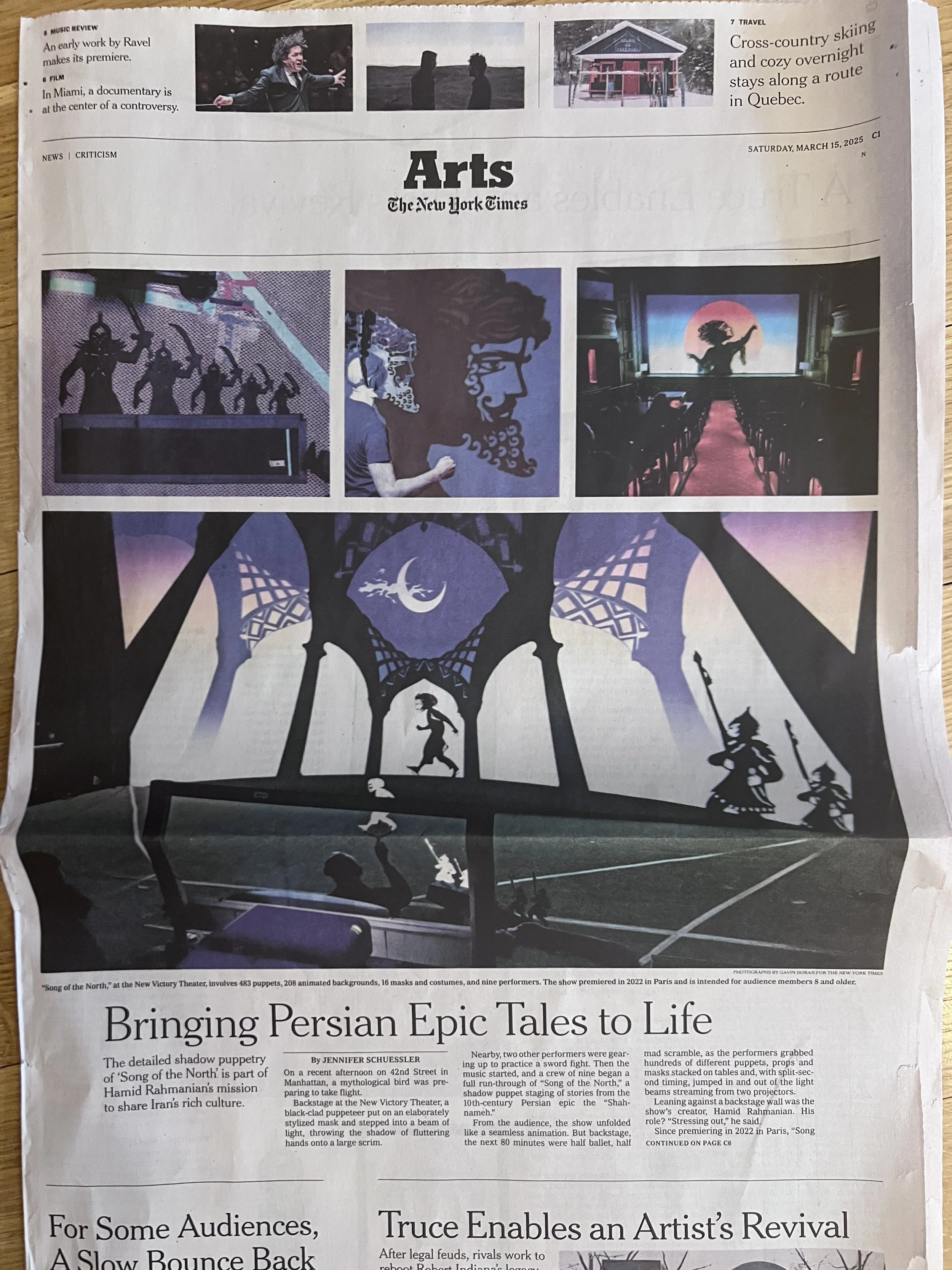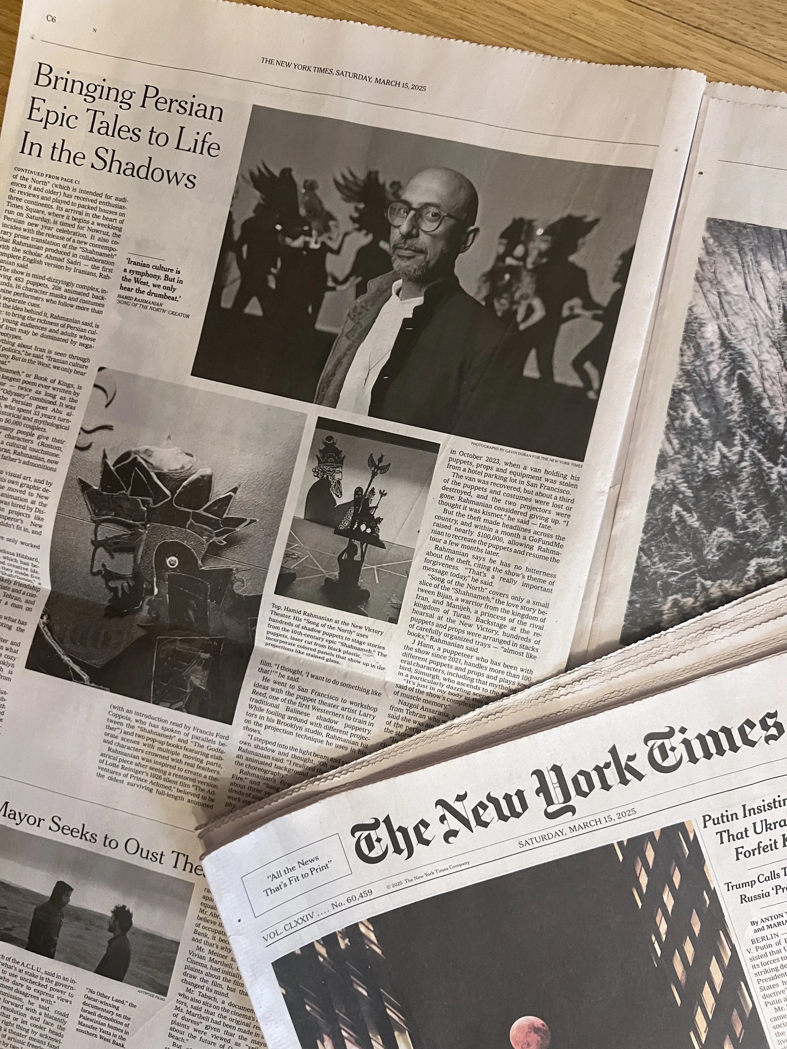 Hamid Rahmanian is a 2014 John Guggenheim Fellow and the recipient of the 2020 United States Artists Fellowship. His work centers on theater, moving image, and graphic arts. His work has been exhibited in international competitions and publications. His films have screened at Venice, Sundance, Toronto, Tribeca, and IDFA film festivals and broadcast on PBS, Sundance Channel, IFC, Channel 4, BBC, DR2, and Al Jazeera. Mr. Rahmanian undertook the immense task of illustrating and commissioning a new translation and adaptation of the tenth-century Persian epic poem Shahnamehby Ferdowsi, entitled Shahnameh: The Epic of the Persian Kings (2013). This best-selling 600-page art book, which the Wall Street Journal lauded as a “masterpiece,” is currently in its second edition (Liveright Publishing). In 2017, he released an immersive audiobook version of Shahnameh: The Epic of the Persian King, with an introduction by Frances Ford Coppola. In 2018, he released a pop up book, entitled, Zahhak: The Legend of the Serpent King(Fantagraphics Books) in English and French which received the Meggendorfer Prize for the Best Pop Up Book and was hailed “Simply breathtaking” by Le Monde. In 2014, Rahmanian shifted his focus to theater arts, working with shadows and digital media. To date, he has created five theater pieces: Zahhak: The Legend of the Serpent King (2014), Mina’s Dream (2016), commissioned by the Onassis Foundation), and UNIMA-USA award winning Feathers Of Fire (2016) which toured in 23 cities around the world to an audience of over 100,000. In 2019, he was commissioned by Yo Yo Ma’s Silk Road Ensemble to create a video animation for their new multimedia project, Heroes Take Their Stand. Mr. Rahmanian completed his latest stage production, Song of the North, which premiered at the Booklyn Academy of Music in 2022 and is currently touring around the world. His most recent project, the new pop up book, The Seven Trials of Rostam is now available. Download Hamid's full biography.